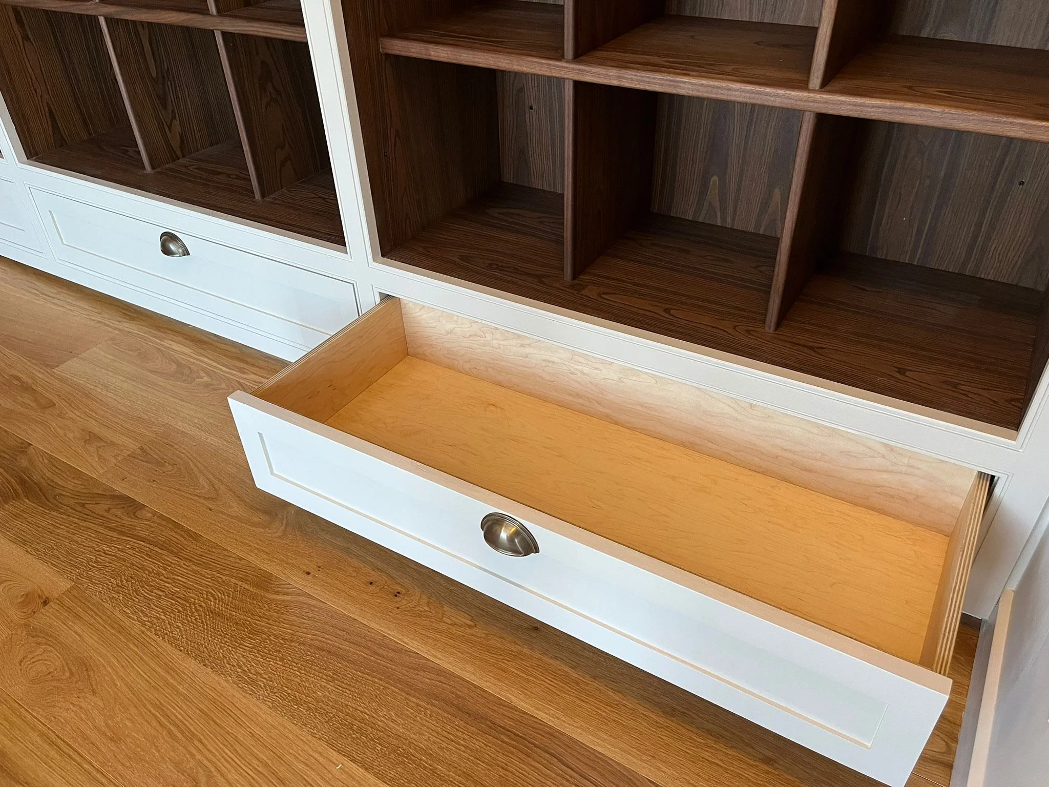 All cabinetry is built by hand in our Norfolk based studio, ensuring precision and quality throughout every stage. Once complete, we install your pieces on-site for a seamless fit and finish. We provide tailored aftercare advice to help preserve the beauty and longevity of your furniture and cabinetry for years to come.